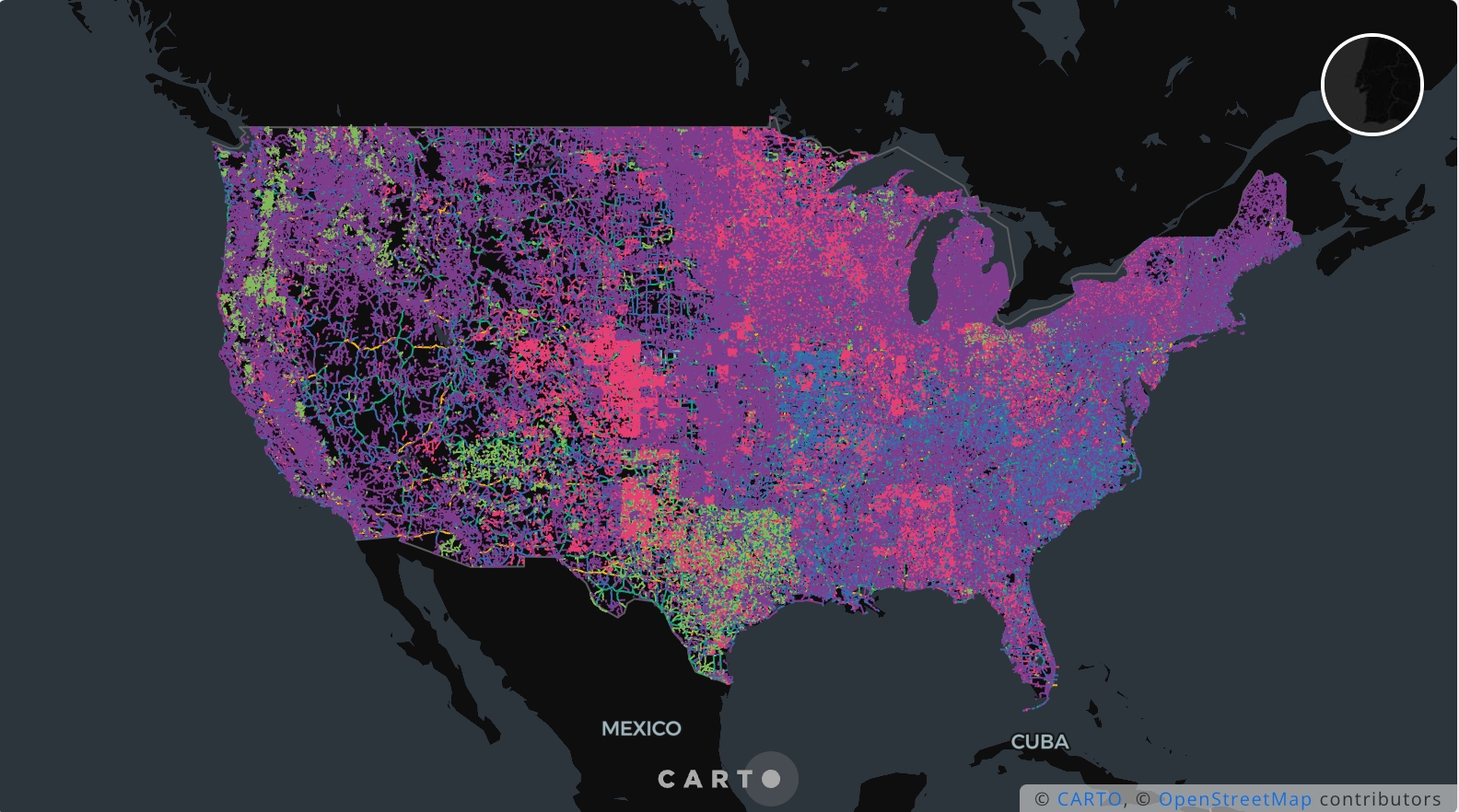 Check out this blogpost to learn how we created this dataset and this visualization using the Analytics Toolbox and a custom application using CARTO for React.