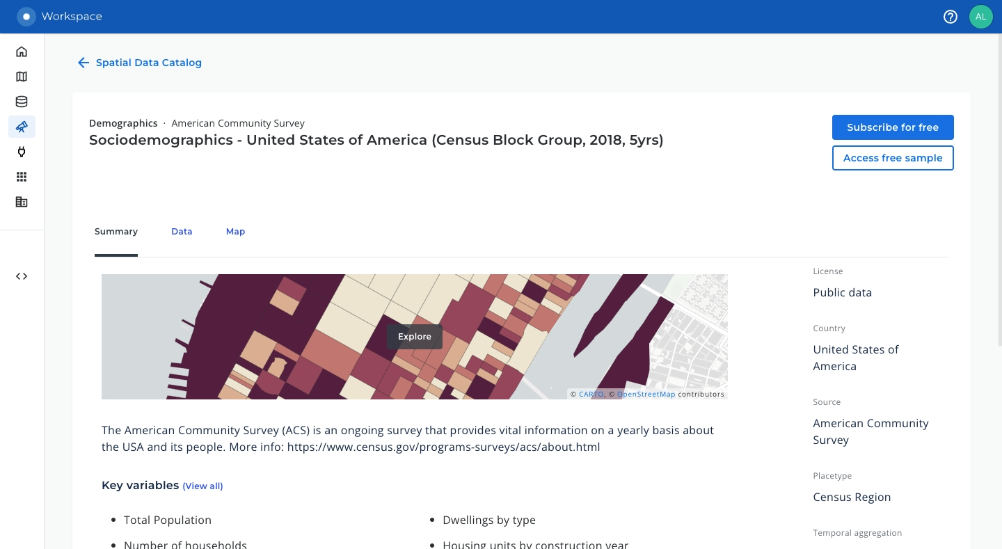*Please note that this data was retired from the in June 2025. You can find similar data products from providers like the ACS by searching for publicly-available demographics data in the Data Observatory.