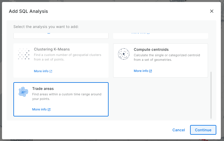 Select “Trade areas” in the list of available SQL Analysis.