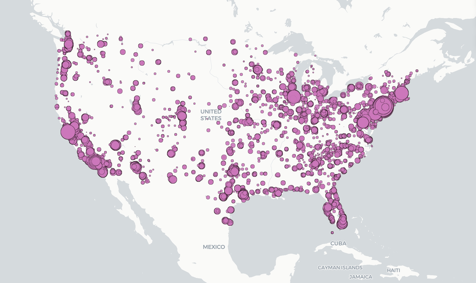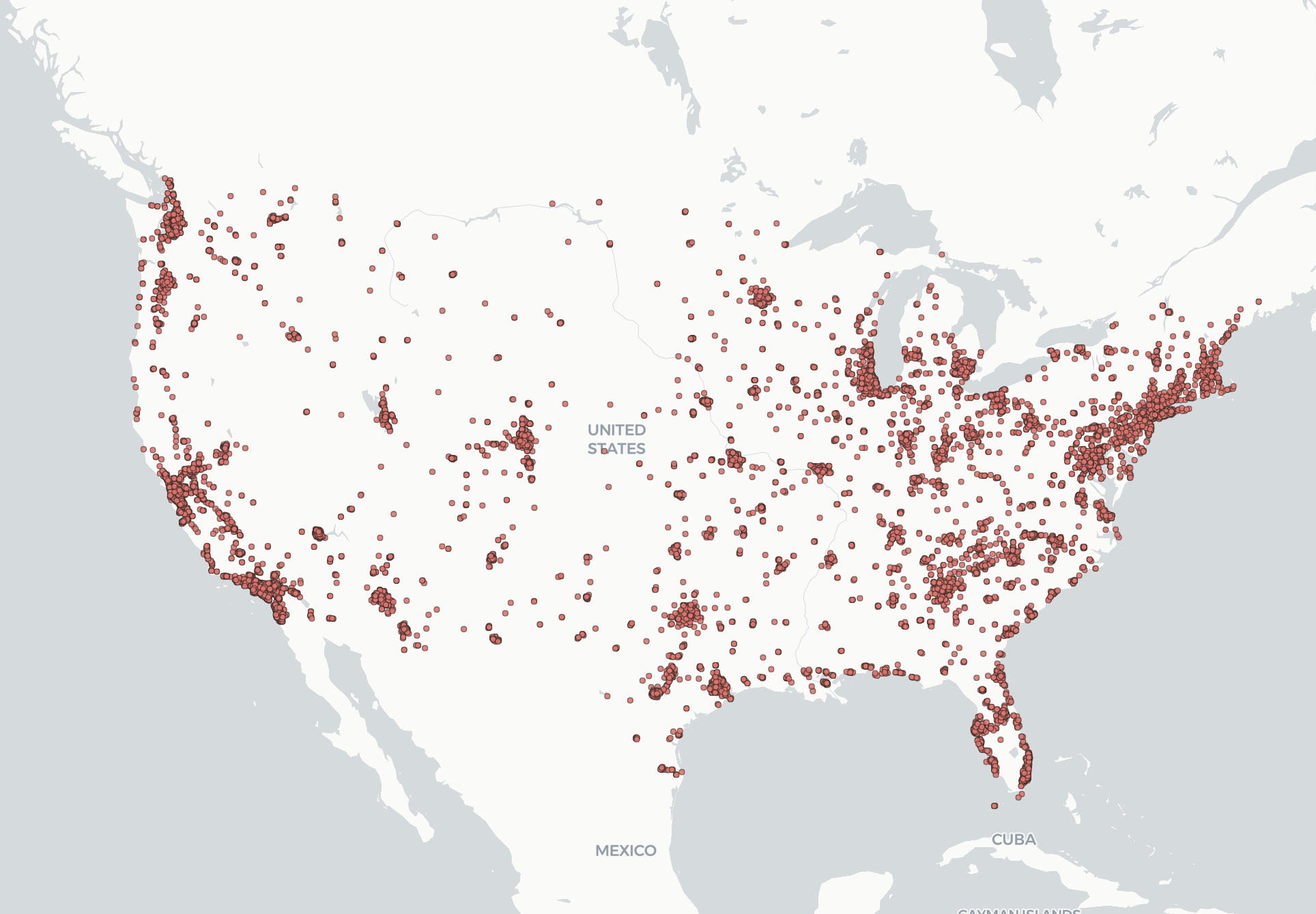 In this example we are going to characterize all Starbucks locations in the US by the total population covered by their catchment areas. We are going to define these catchment areas as a 3km buffer around each store.
