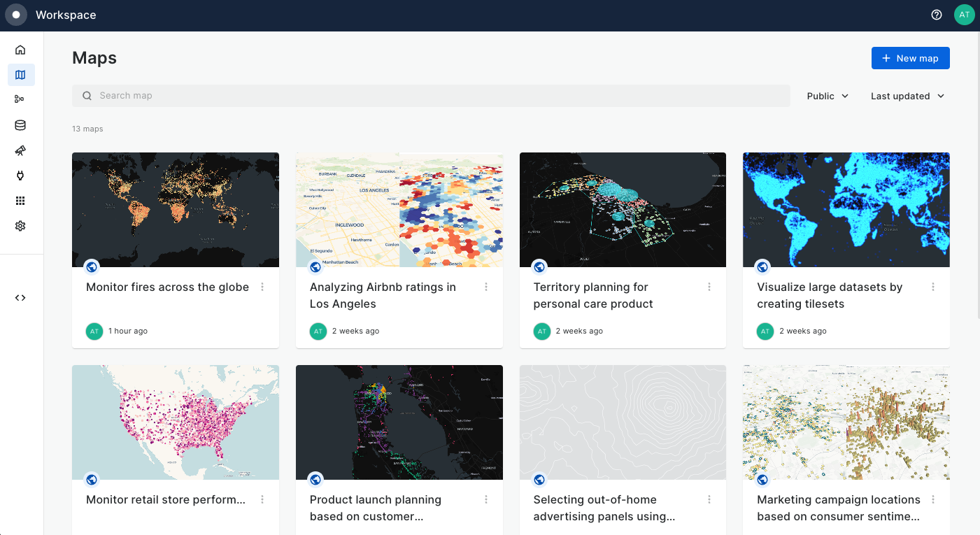 Access the Maps section from your CARTO Workspace using the navigation menu and create a New Map.