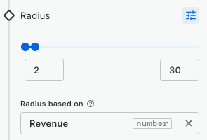 Now click on the options for the Radius configuration and in the section “Radius Based On” pick the column