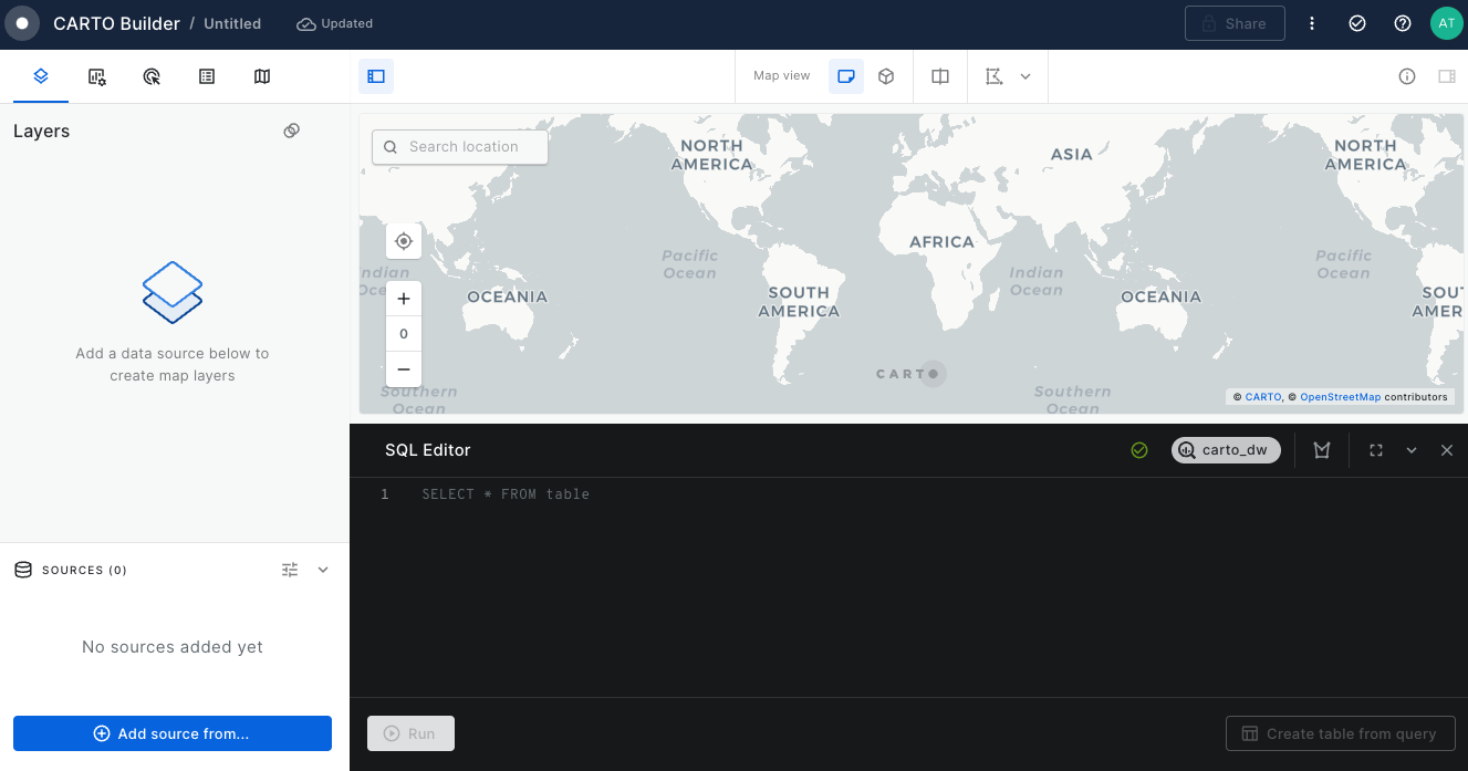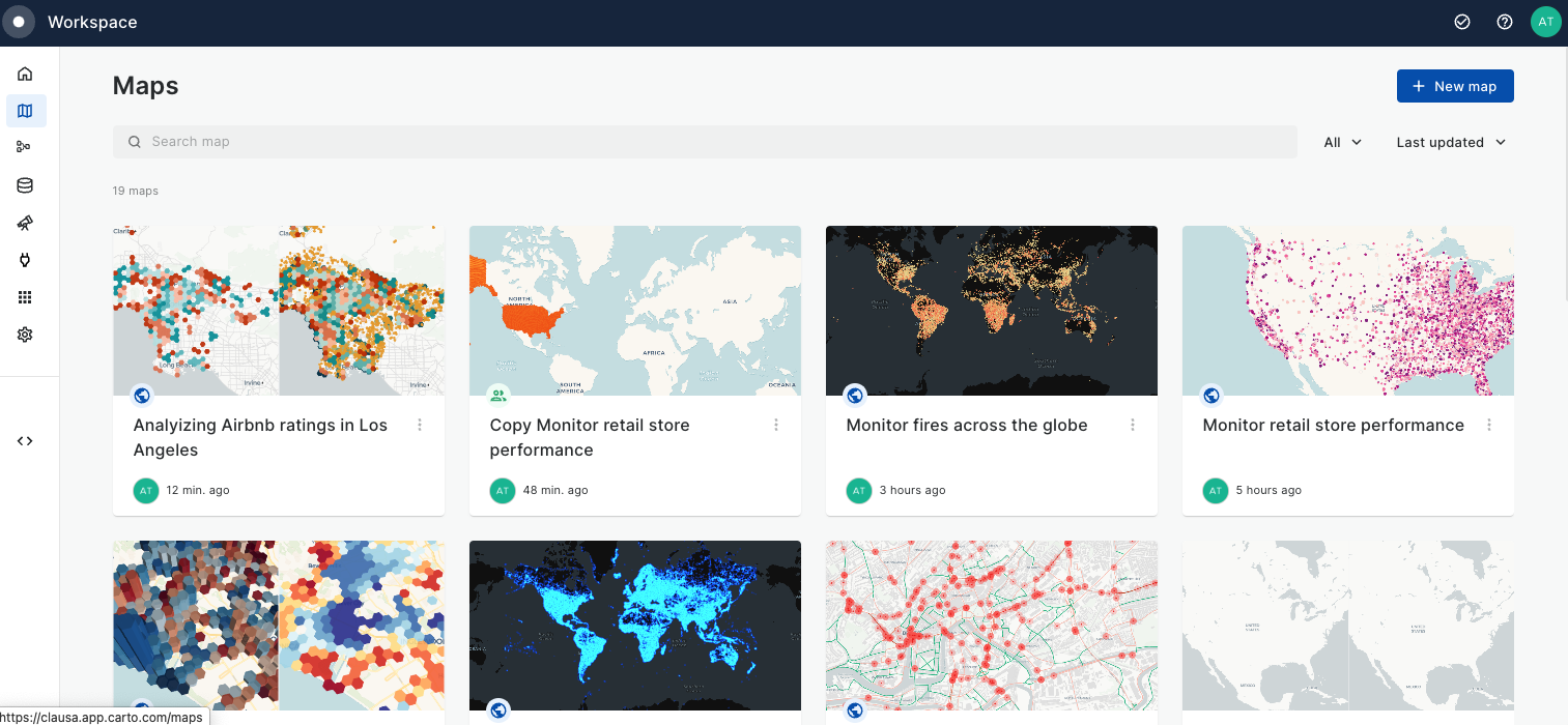 Access the Maps from your CARTO Workspace using the Navigation menu and create a "New map".