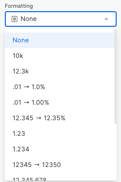 Using the Formatting option, you can auto-format data, ensuring enhanced clarity. For instance, you can apply automatic rounding, comma-separations, or percentage displays.