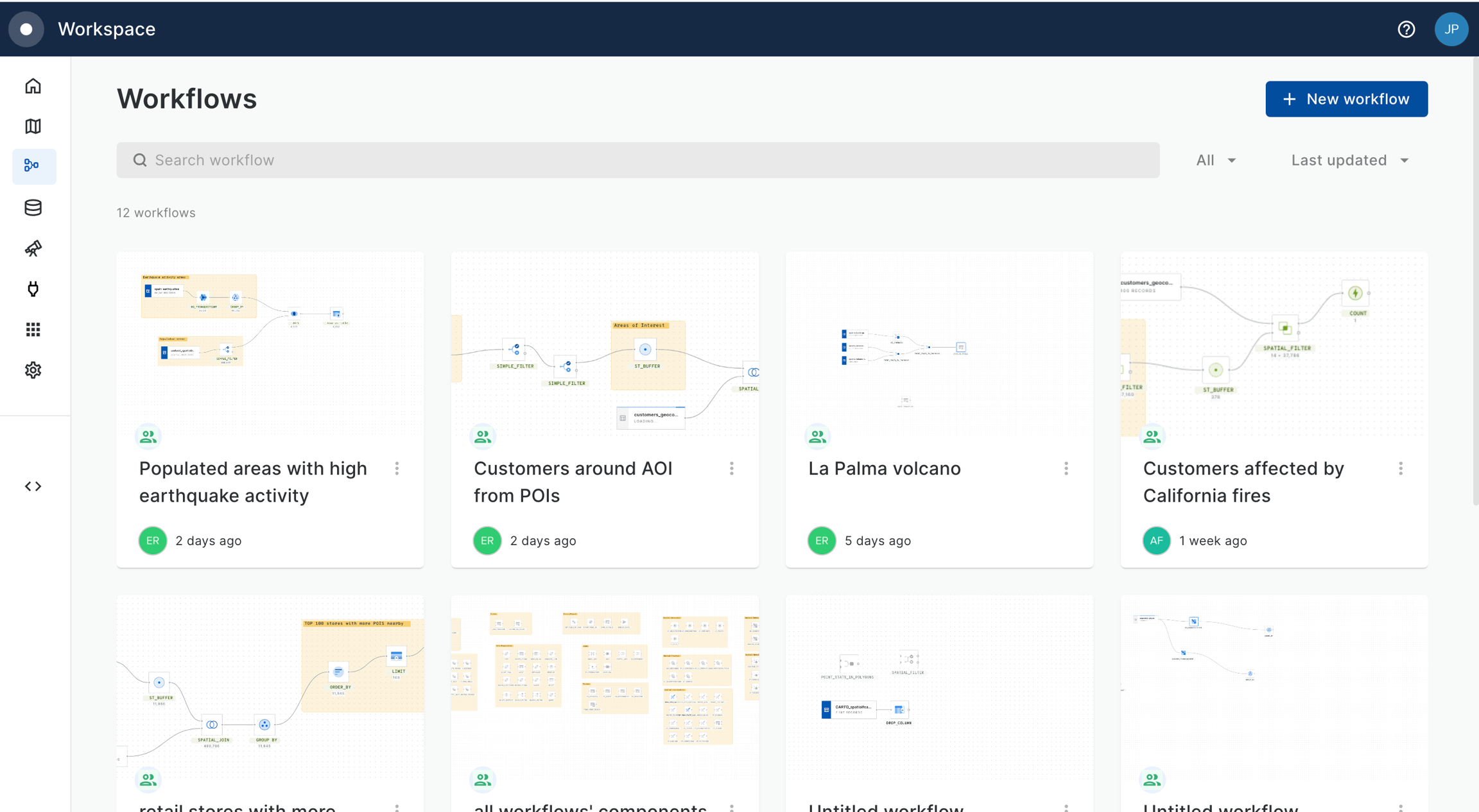 In your CARTO Workspace under the Workflows tab, create a new workflow.