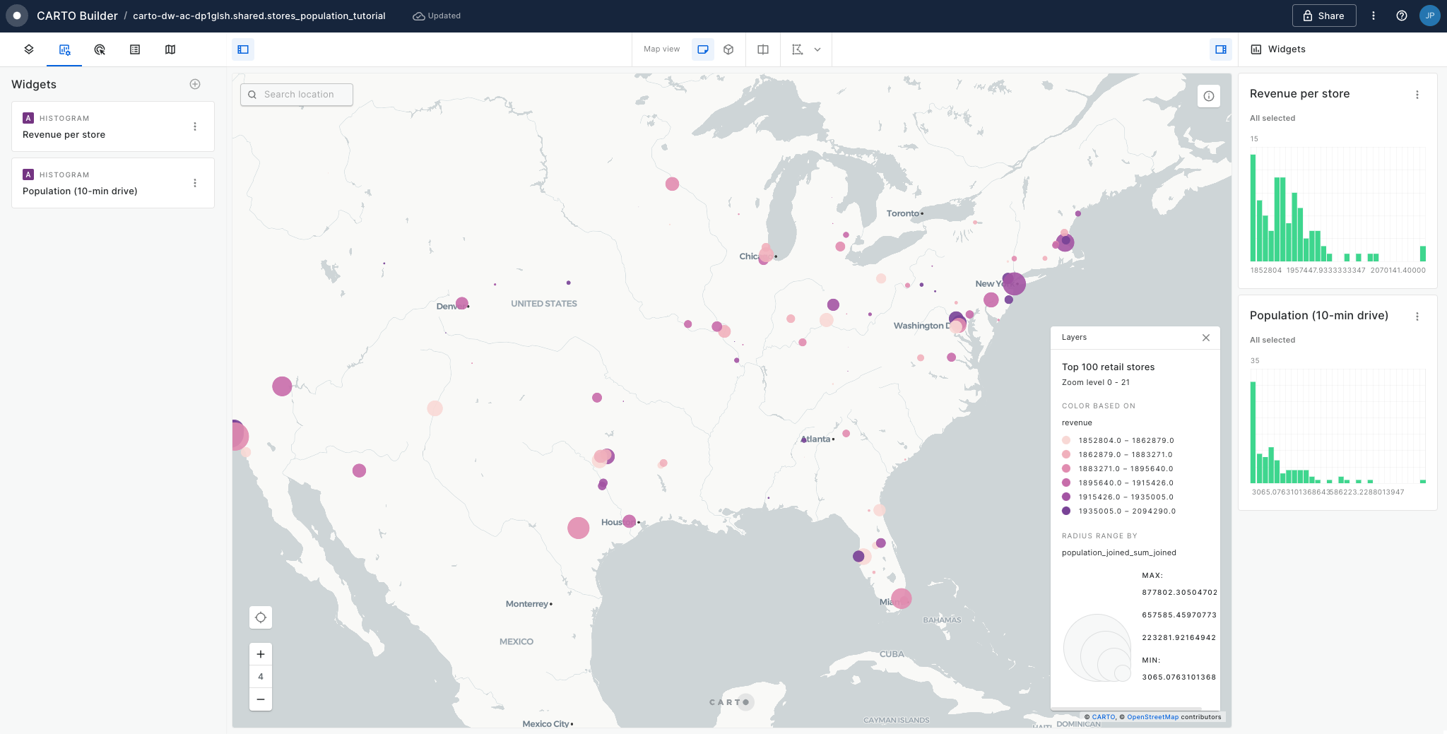 retail_storestable available in demo data. You should be able to preview the data both in tabular and map format.
