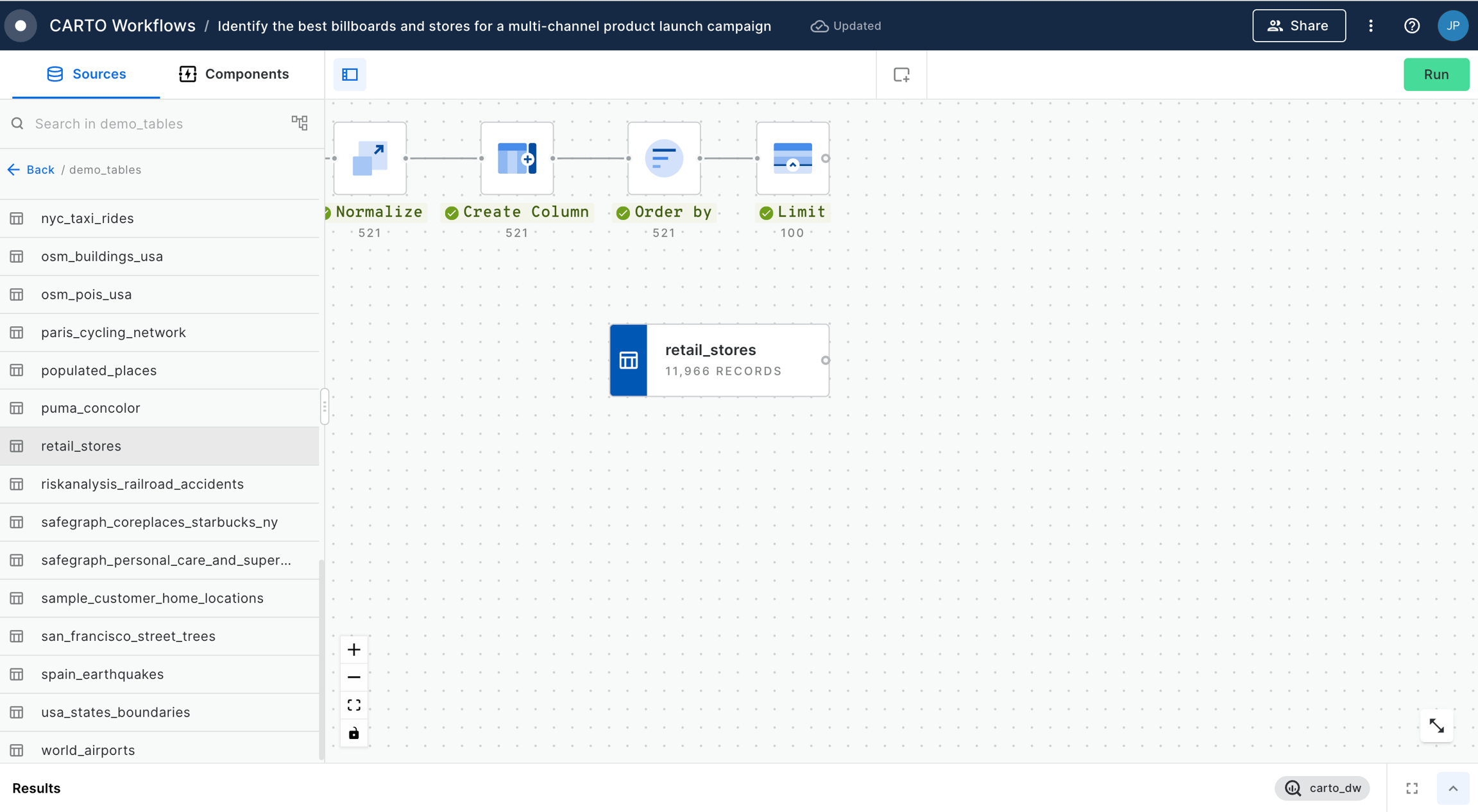 In this tutorial we are going to select what are the best billboards and retail stores in order to create a targeted product launch marketing campaign across multiple channels: out of home advertising and in-store promotions.