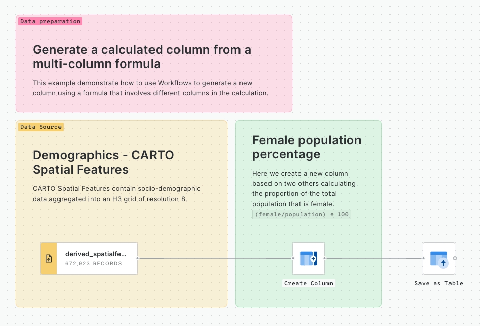 This example demonstrates how to use Workflows to generate a new column using a formula that involves different columns in the calculation.