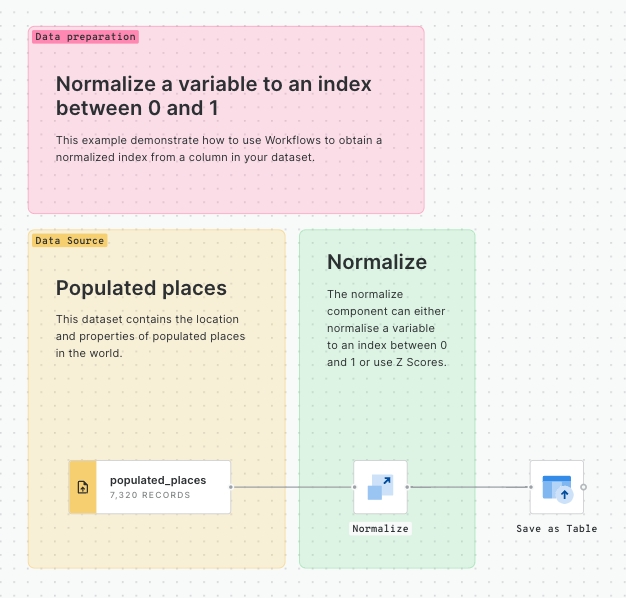 This example demonstrates how to use Workflows to obtain a normalized index from a column in your dataset.