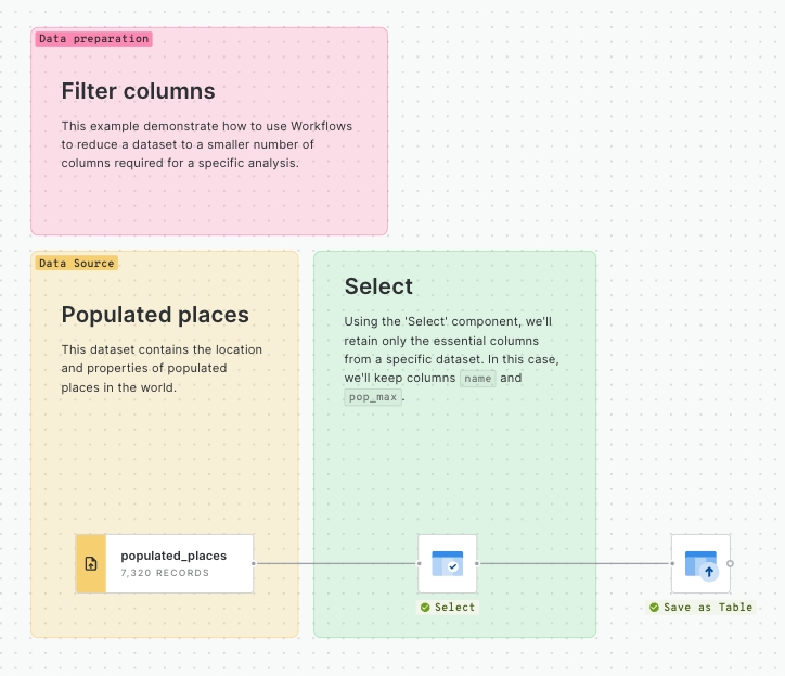 This example demonstrates how to use Workflows to reduce a dataset to a smaller number of columns required for a specific analysis..