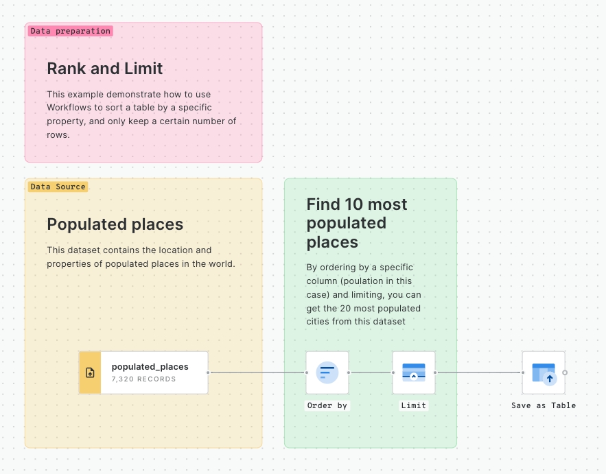 This example demonstrates how to use Workflows to sort a table by a specific property, and only keep a certain number of rows.