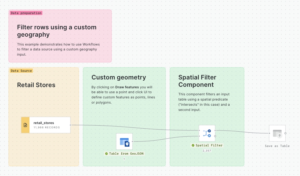 This example demonstrates how to use Workflows to filter a data source using a custom geography input.