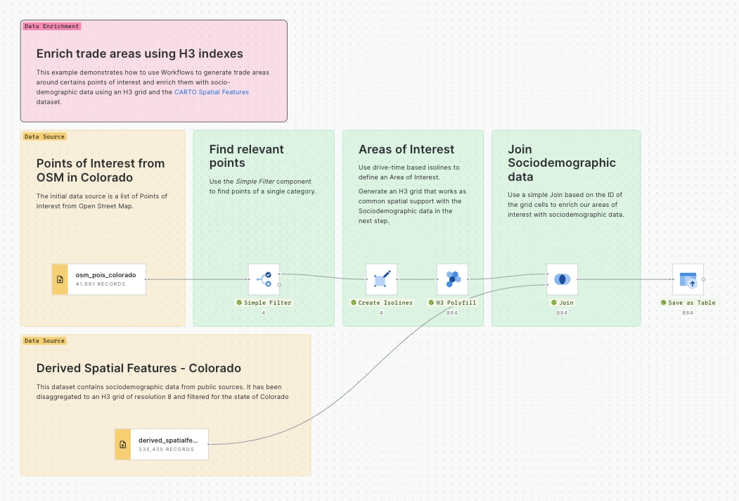 All of these tasks are undertaken with CARTO Workflows - our low-code tool for automating spatial analyses. Find more tutorials on using Workflows here.
